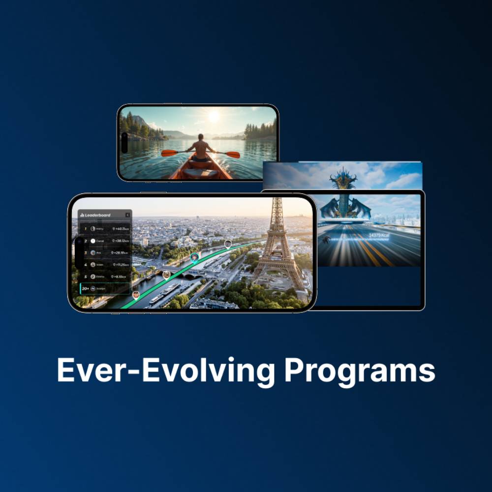 A fitness platform where you race through global 3D landscapes, train with multilingual coaches, and receive a plan personalized from your biometric data.