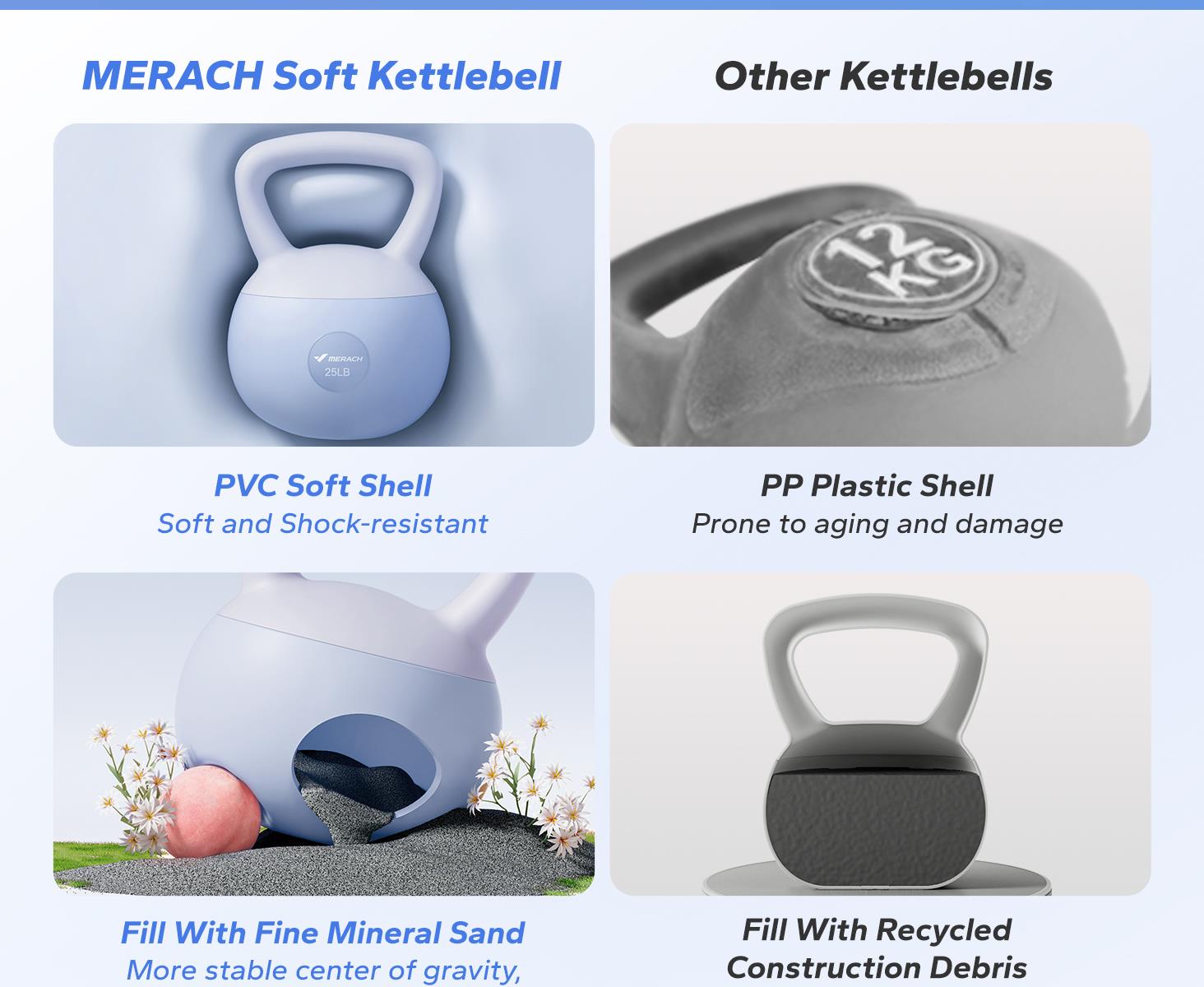 I recently purchased the blue 25lbs MERACH Soft Kettlebell, and I have to say, it has completely exceeded my expectations. From the moment I unboxed it, I noticed how well-made it is. The soft-touch PVC surface feels smooth and comfortable in my hands, which makes swings, squats, and lifts much easier on my wrists compared to traditional iron kettlebells. The sand filling inside gives it a stable and balanced weight, so even during dynamic movements, it doesn’t wobble or feel awkward.