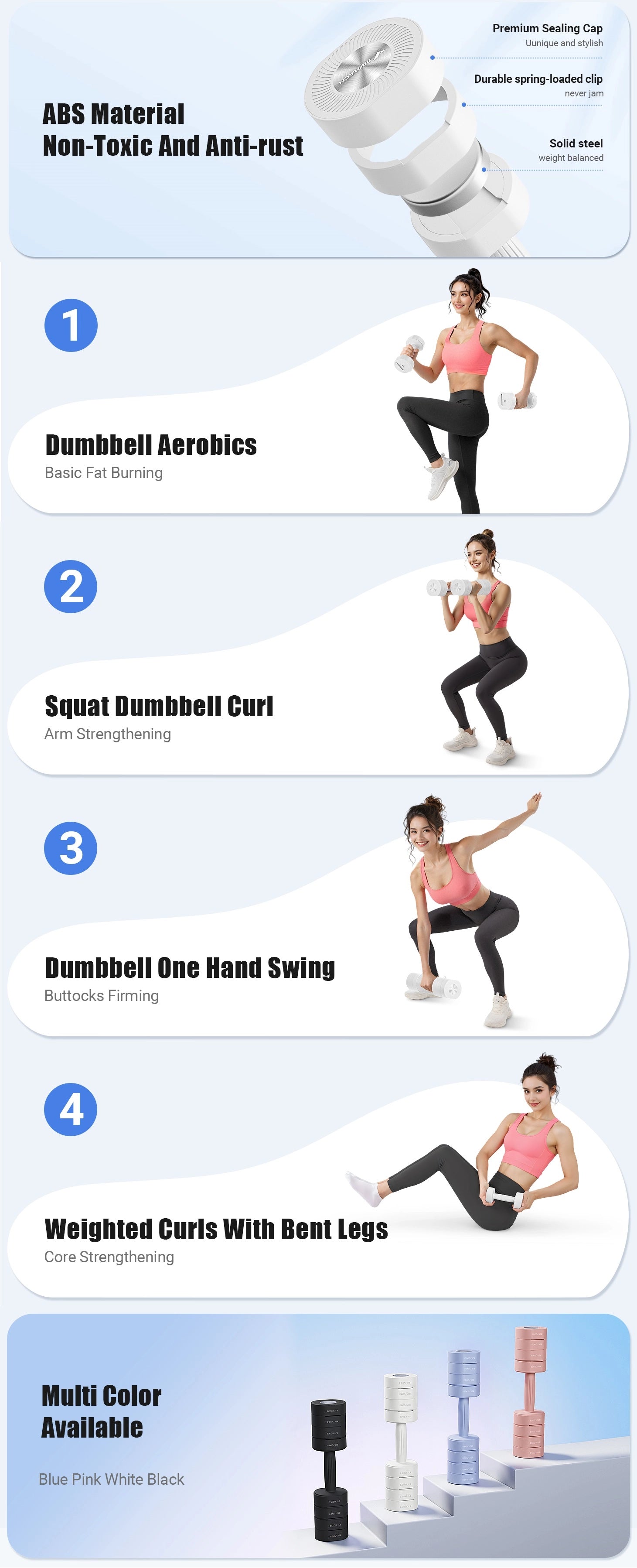 From bodyweight upper body workouts to leg, core, and back training, this versatile dumbbell set supports multiple exercise routines. Combine different weight levels and movements for efficient fat burning, muscle sculpting, and overall strength improvement at home, in the gym, or even in the office.