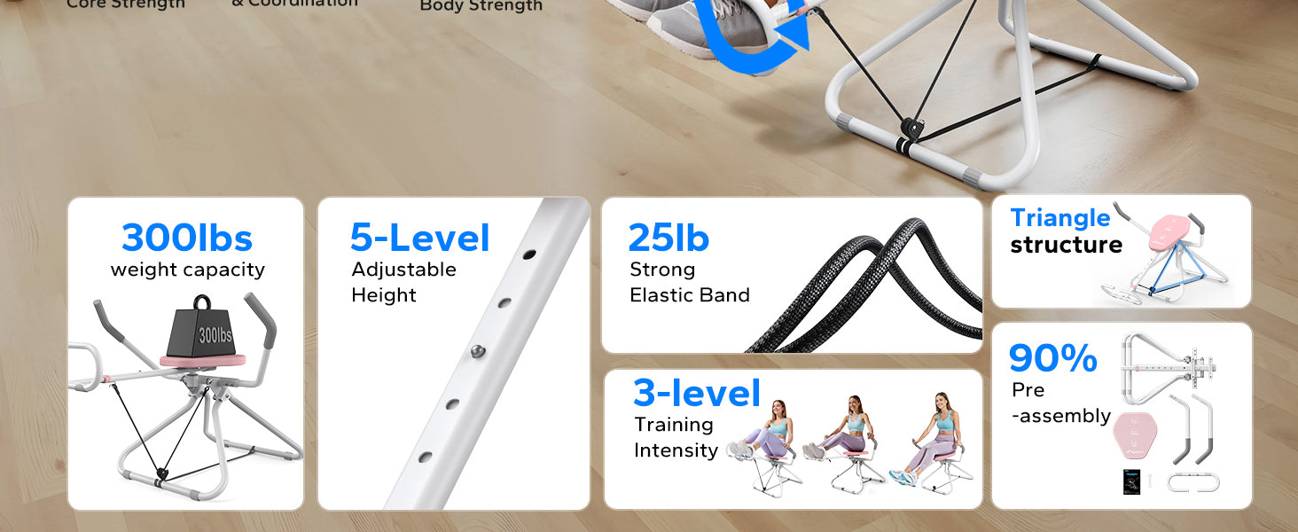 Unlike traditional tools, this multifunctional ab exerciser combines rowing, resistance bands, yoga support, and crunch training. It’s designed to flatten your stomach and strengthen and shape your entire midsection.