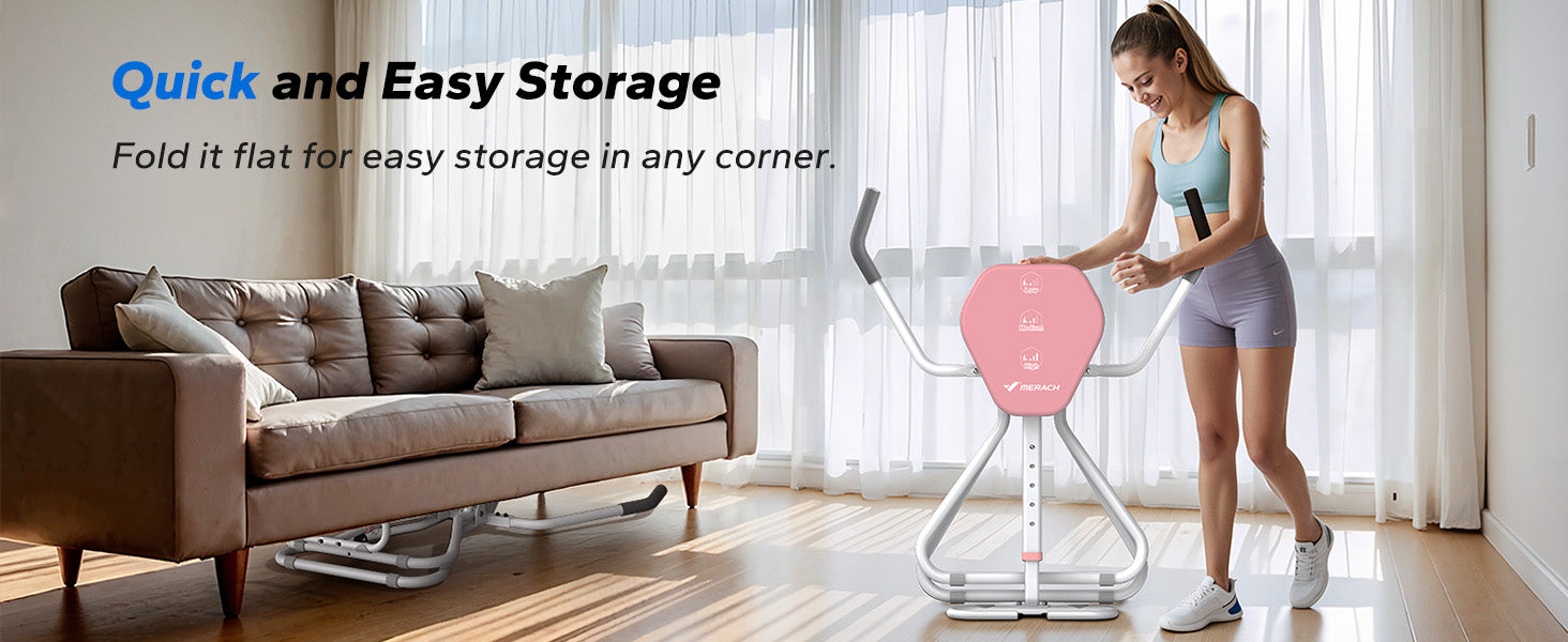 Our ab exerciser arrives 90% pre-assembled for quick setup and folds flat or upright for convenient storage in closets, under beds, or tight spaces.