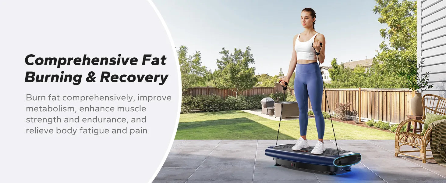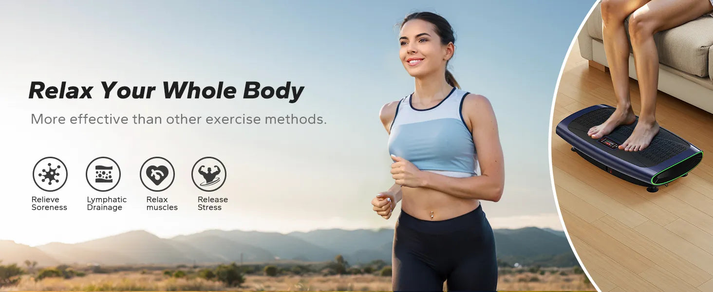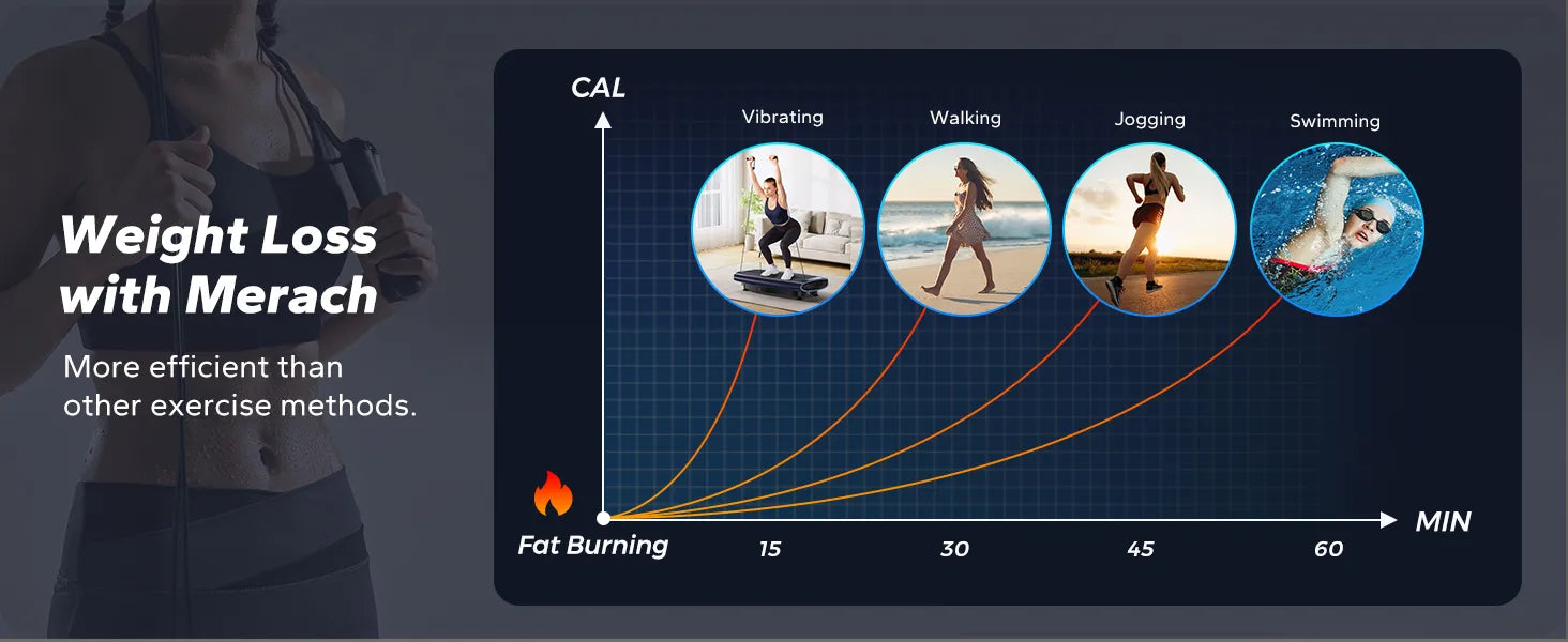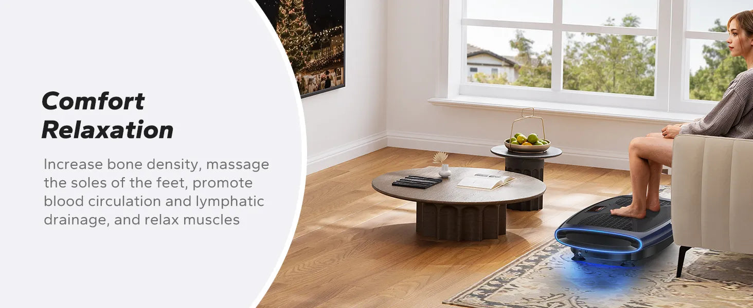 MERACH vibration plate exercise machine not only promotes lymphatic drainage and blood circulation but also helps increase bone density, relieve chronic pain, and relax muscles. Regular use can improve fitness, repair old injuries, and provide a greater range of motion.