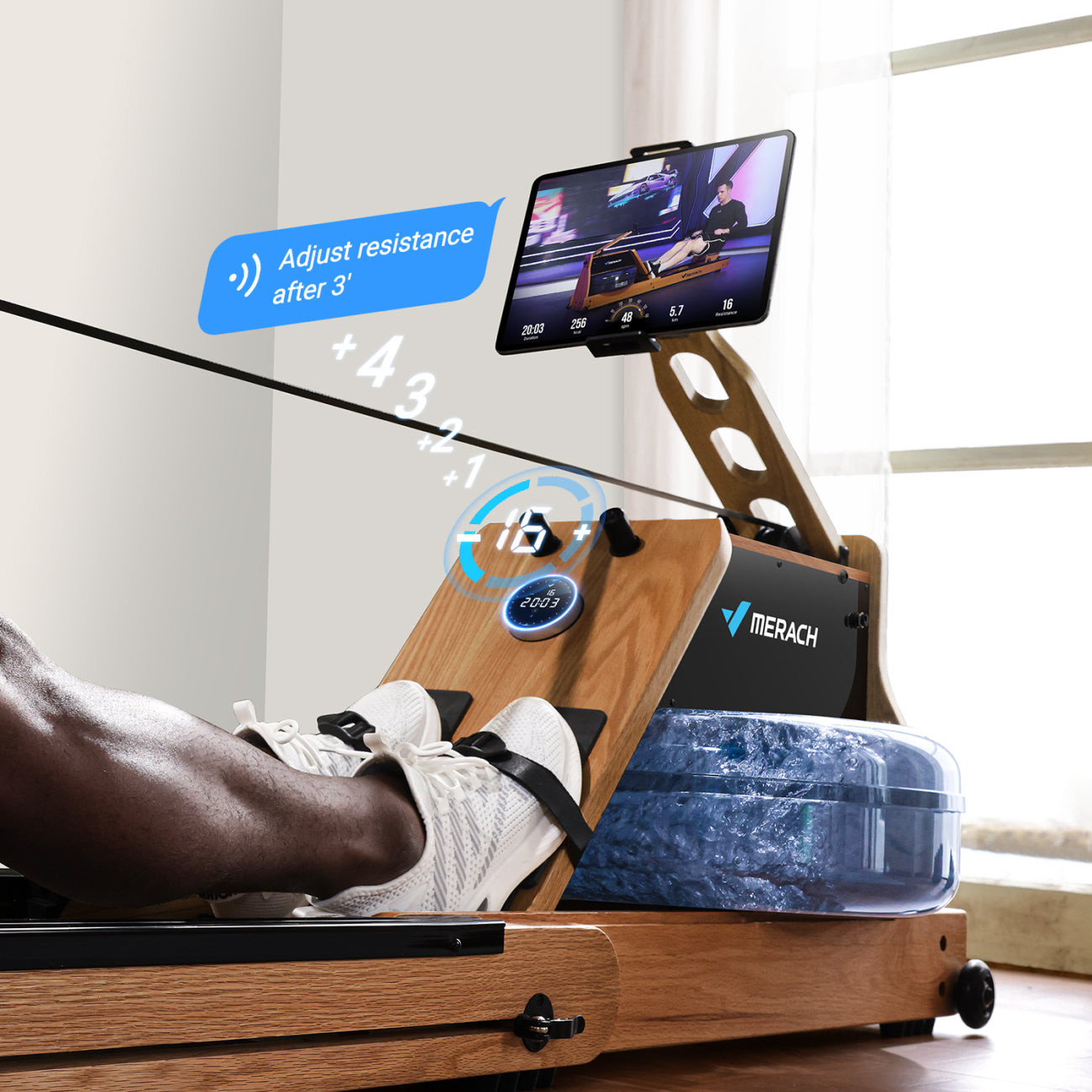 When you select a scientific training course on the MERACH APP and start following along, the rowing machine’s resistance adjusts in real-time to match the resistance changes in the course. You’ll receive a reminder before each resistance adjustment, allowing you to adapt your rowing effort accordingly.