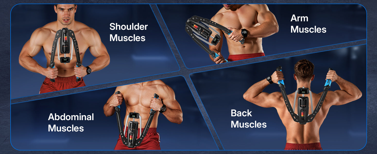 This arm exercise equipment combines upper body strengthening and chest expansion in one device. The 2–20 levels (22–440 lbs) of hydraulic resistance suit your personal training goals.