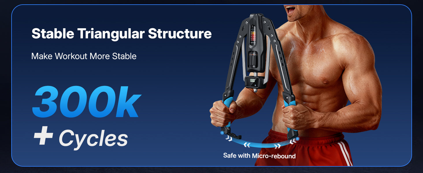 Built for long-term durability, the arm exercise machine is equipped with double-layer high-density carbon steel and protective housing. The triangular frame and micro-rebound safety design enhance stability and reduce the risk of injury.