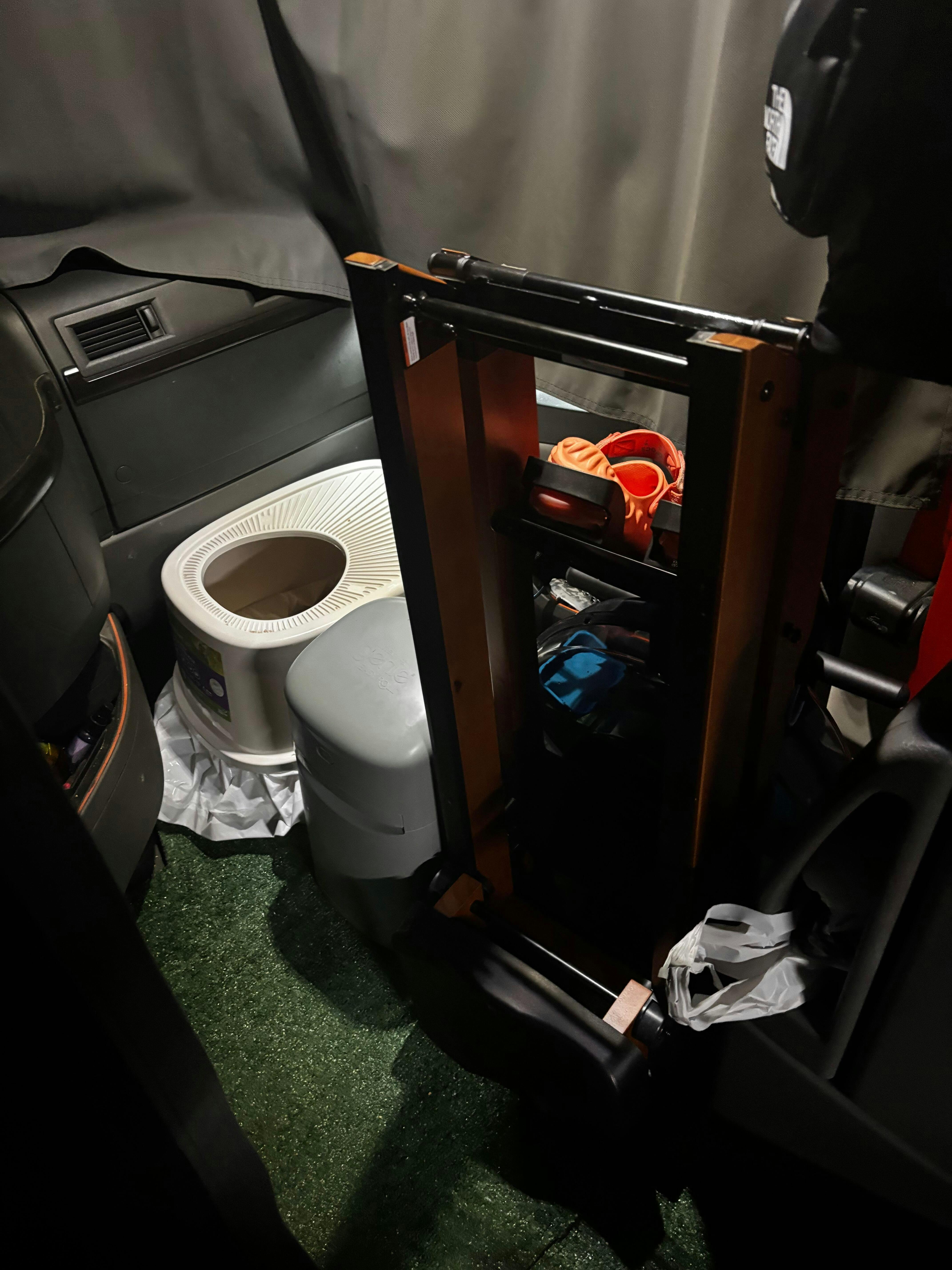 I got it in my truck and it fits perfectly without it being in the way, it doesn’t fall down while I drive either. It unfolds and folds very good. I drive a Volvo vnl 860 I took the passenger seat out so I have a ton of space on the floor. Now if you don’t have space on the floor this will fit on the bed/bunk area unfolded. Of course you would have to take the bed out and you could work out.
