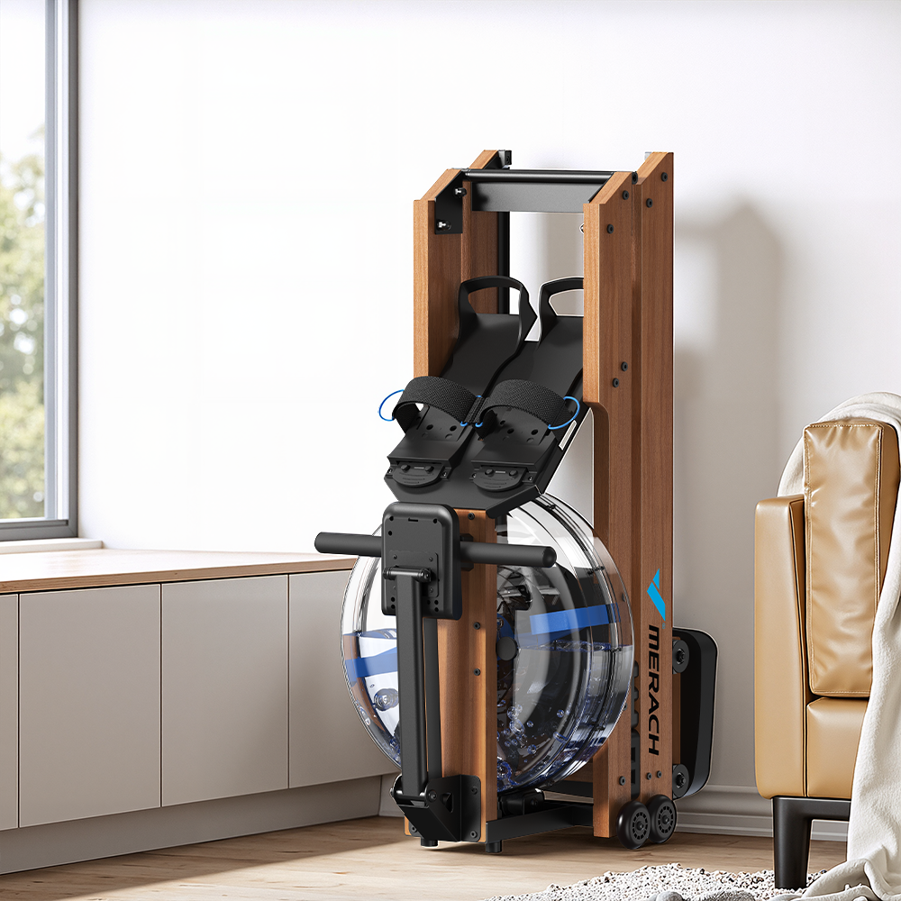 This rowing machine features a 180° foldable design and bottom wheels, allowing you to store it upright or move it like a suitcase. It is ideal for home gyms with limited space.