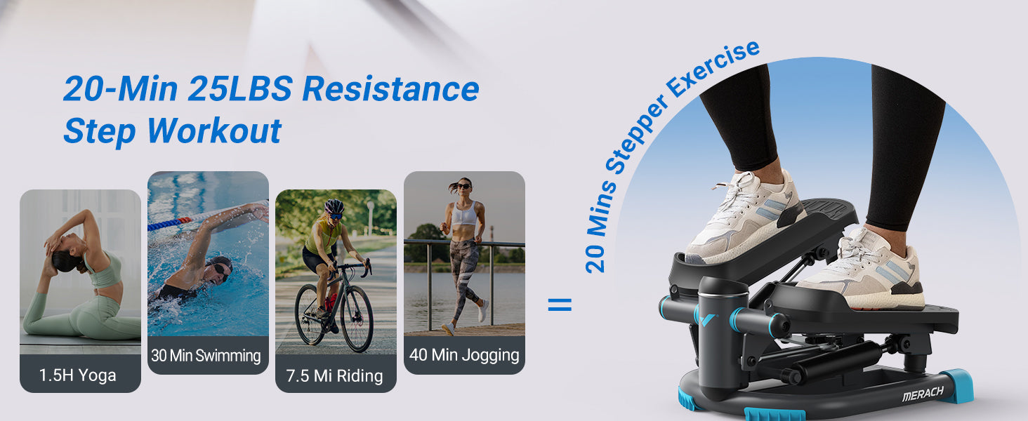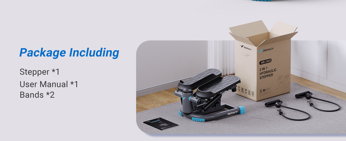 The Merach Stair Stepper with Resistance Bands is a convenient and effective addition to any home gym. Its compact size is perfect for small spaces, and despite its portability, it provides a solid workout targeting both lower and upper body muscles. The resistance bands add versatility, allowing for customized workout intensity. It’s sturdy, easy to use, and features a digital display for tracking progress. Overall, it's a great choice for a compact, efficient exercise solution at home.