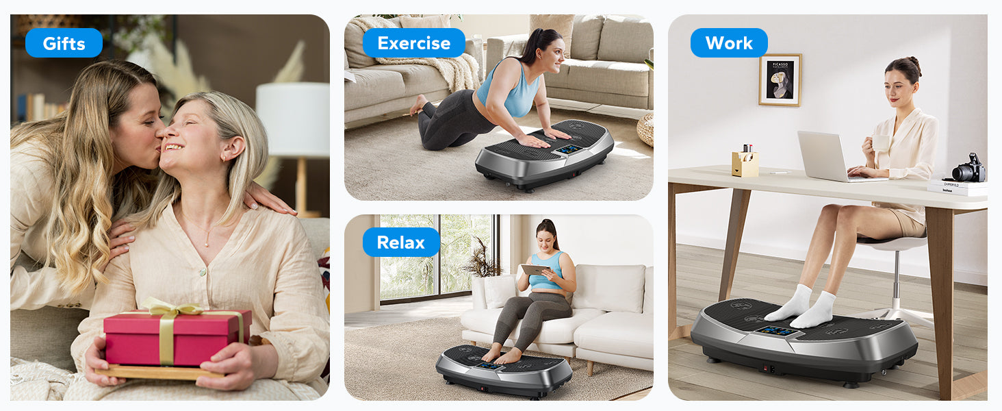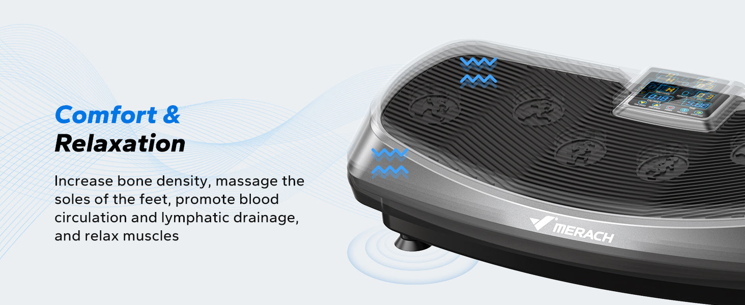 MERACH vibration plate exercise machine not only boosts metabolism and blood circulation, but also helps increase bone density, relieve chronic pain, and relax muscles. Regular use can improve fitness, repair old injuries, and provide a greater range of motion.