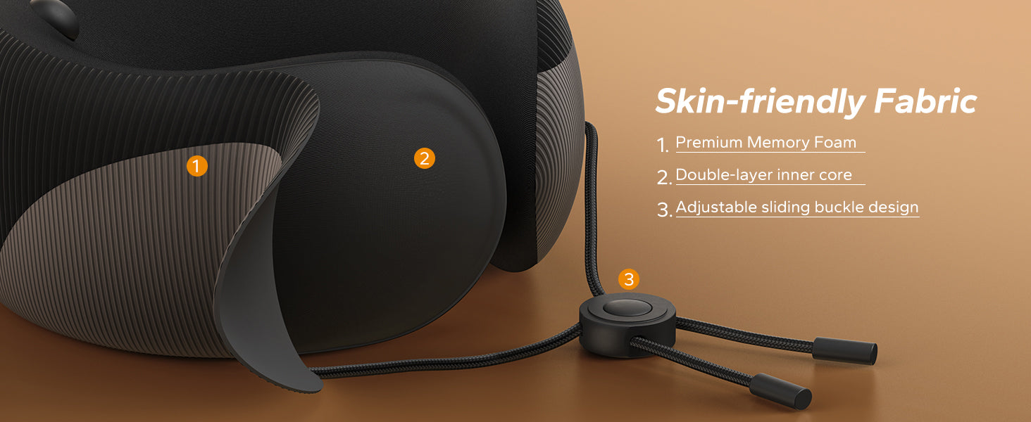 The travel pillow features an ergonomic C-shaped design that perfectly contours to the natural curve of your neck. Whether used for soothing and relaxing or as a supportive neck pillow, it meets all your comfort and relaxation needs.