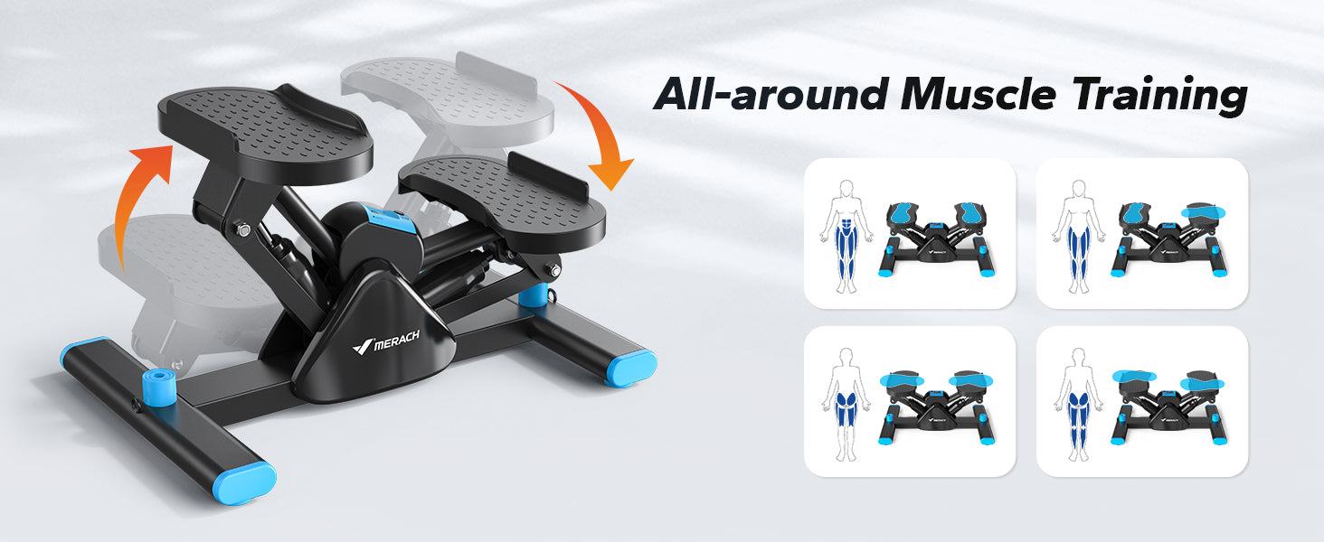 MERACH mini stair stepper machine allows for multiple exercise positions, each targeting different muscle groups, with a focus on effectively stretching and strengthening your leg muscles.