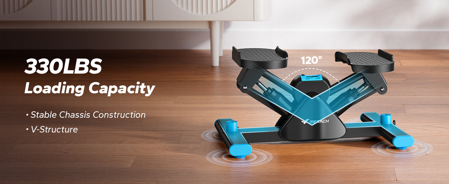 The enlarged chassis and reinforced V-frame design provide superior stability, allowing the stepper to support heavier users up to 330 lbs.