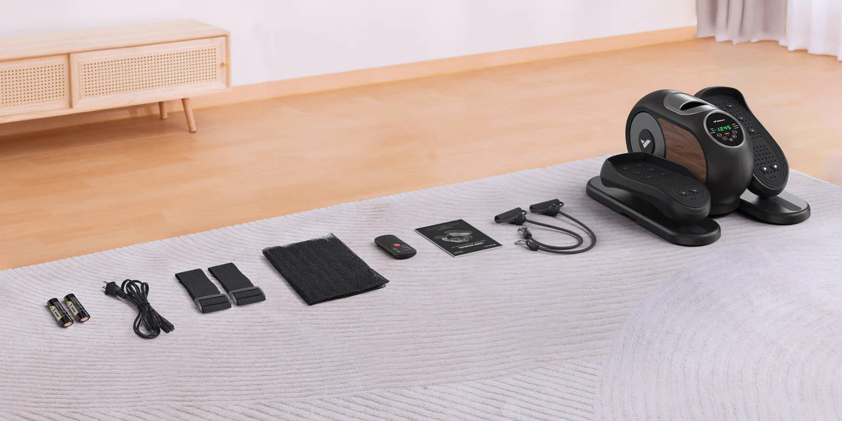 Low-impact under-desk elliptical that burns calories, improves circulation, relieves muscle tension, and strengthens legs. Compact, quiet, and adjustable for home or office use.