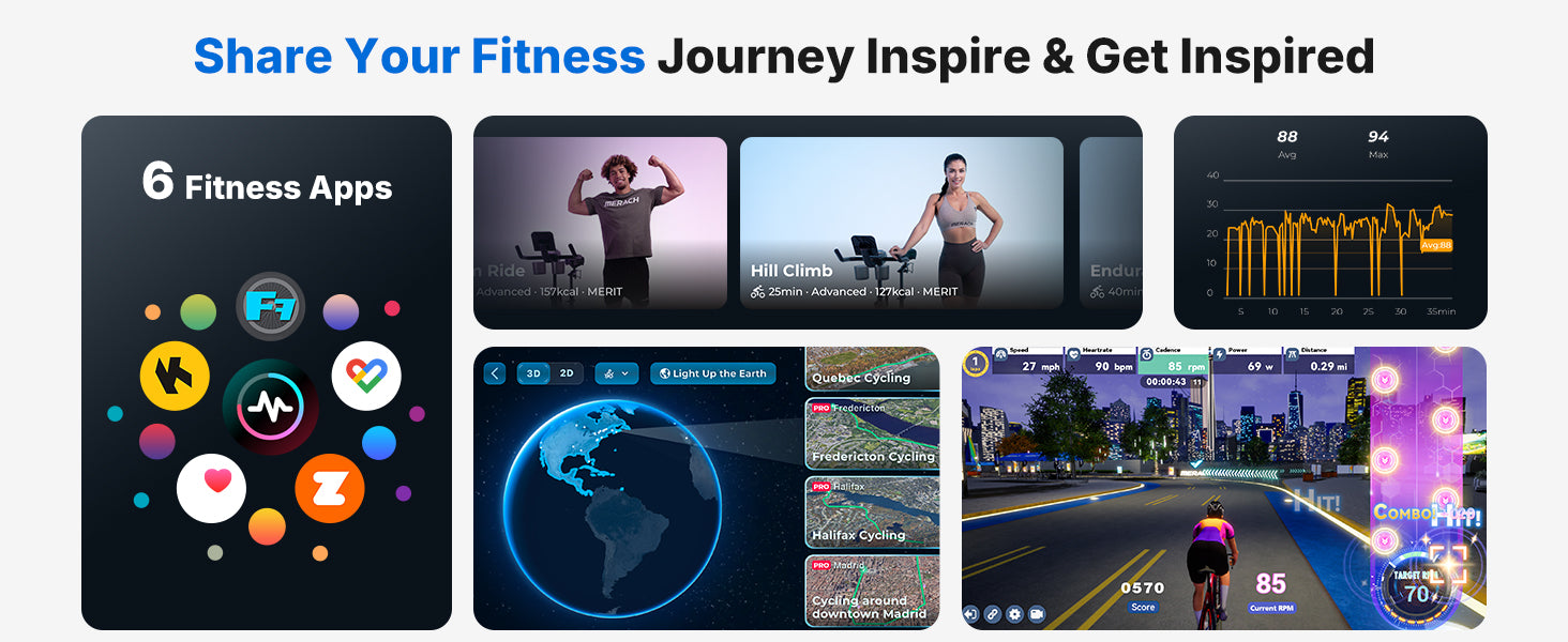 You can connect your exercise bike with dumbbells to the free Merach App to track speed, distance, calories, cadence, and resistance in real time. Join interactive classes, scenic rides, or gamified workouts that can boost your fat-burning results by up to 30%. The bike also integrates with Kinomap and Zwift for an immersive home fitness experience.