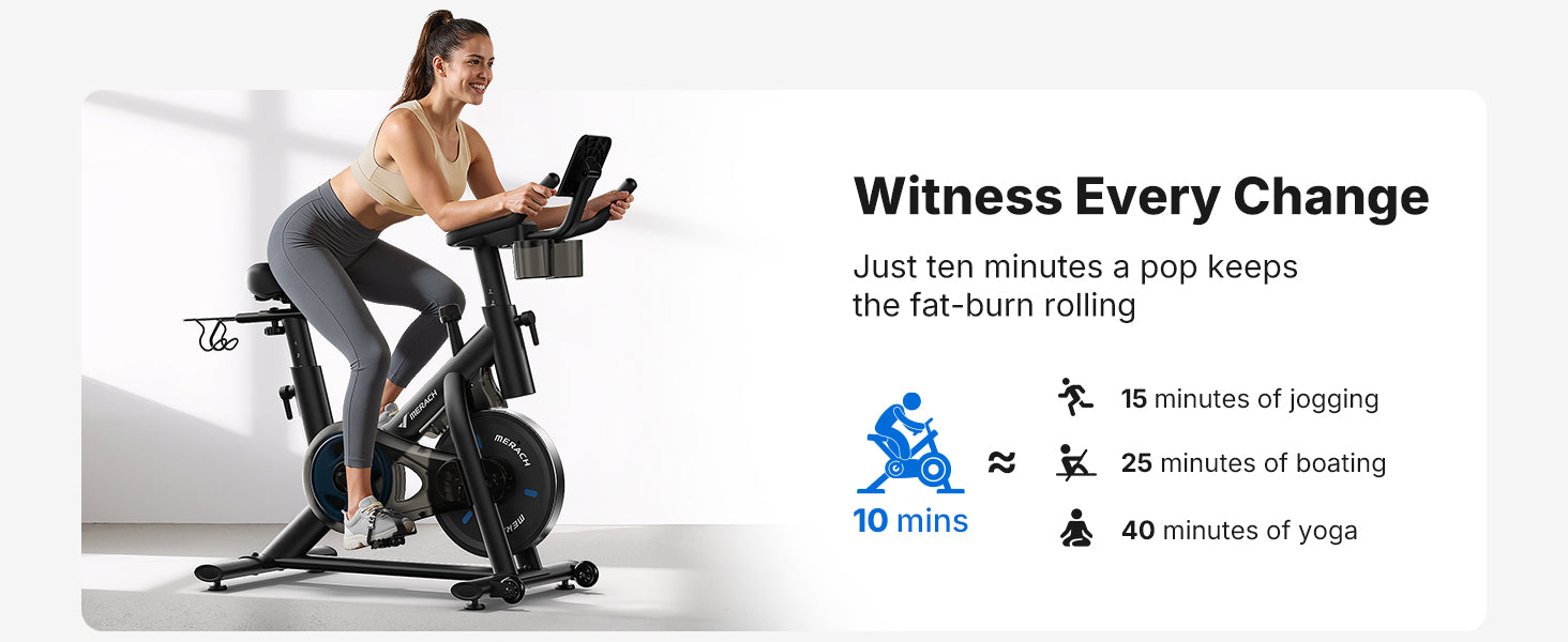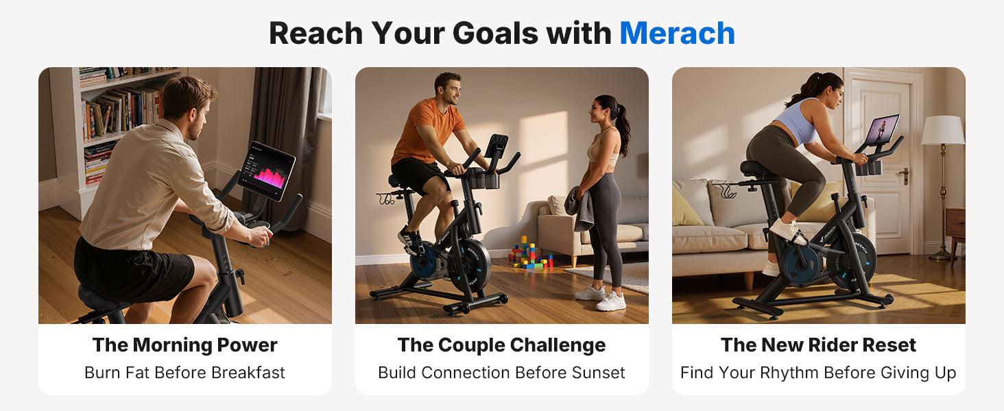 REAL-TIME DATA INTERACTION: The stationary bikes for home come with a MERACH APP. It's free to use forever once the bike and app are paired. Our fitness trainers work out with you online and offer professional guidance. Our app tracks real-time metrics like distance, time, calories, odometer, speed, cadence, and resistance level. Additionally, we provide gamified workouts and scenic classes to enhance your experience and boost your fat-burning results by 30%!