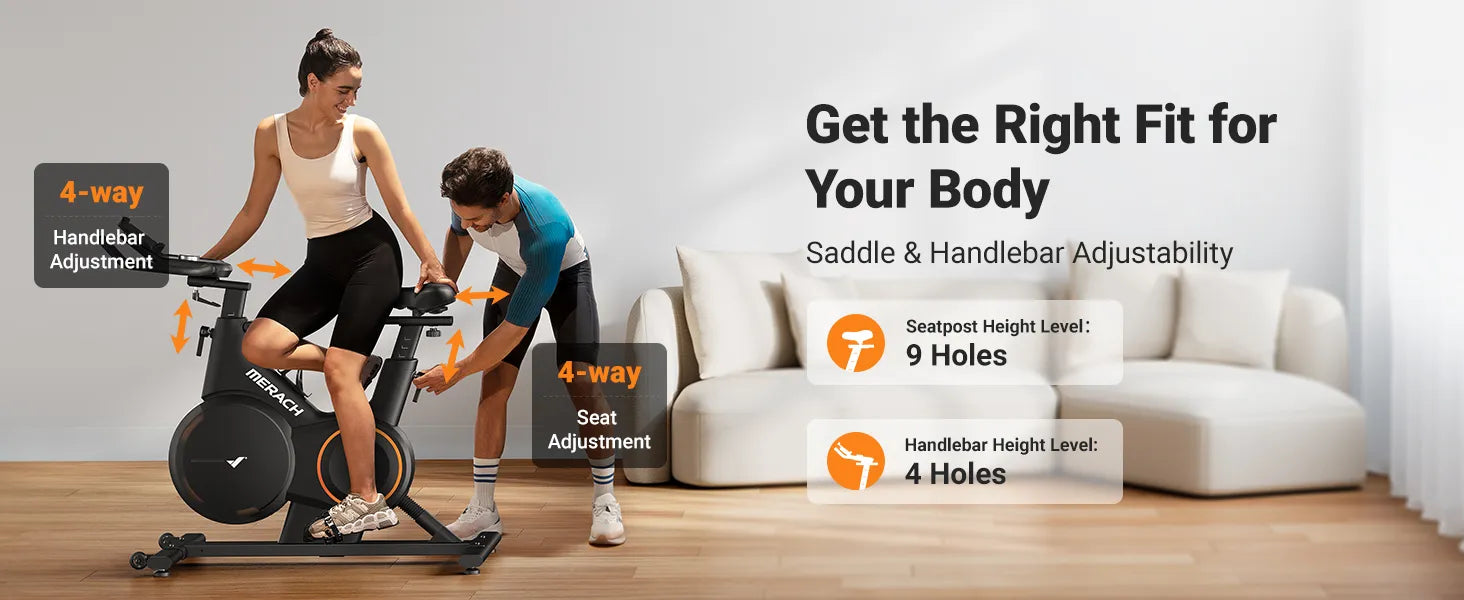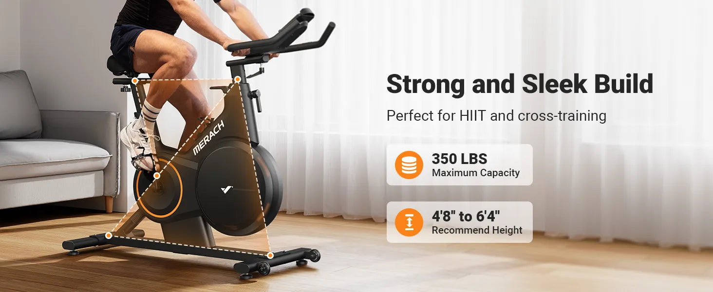 The heavy-duty exercise bike has a 4-ways adjustable handlebar a 4-ways adjustable padded seat and grippy Cage Pedalsa for all riders from 4'8'' to 6'4''. H-Frame Stabilizes and 10 kg Flywheel Support up to 350 lbs, providing exceptional durability and stability, suitable for bike riders of various body types.