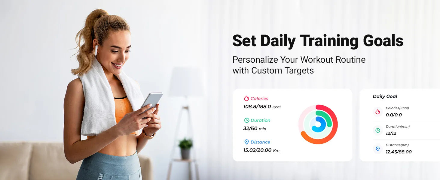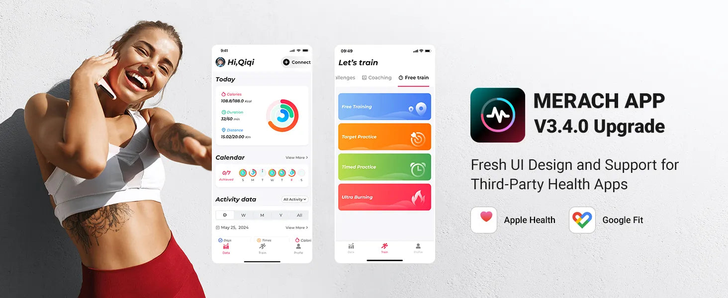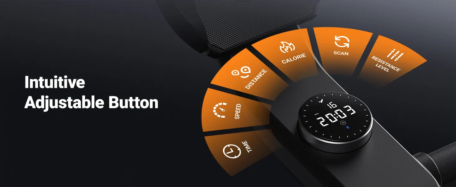 The MERACH and FantomFite apps at no subscription fee to track real-time metrics like distance, time, calories, speed, and resistance. Syncs with Apple Health and Google Fit, and offers online trainers for professional guidance