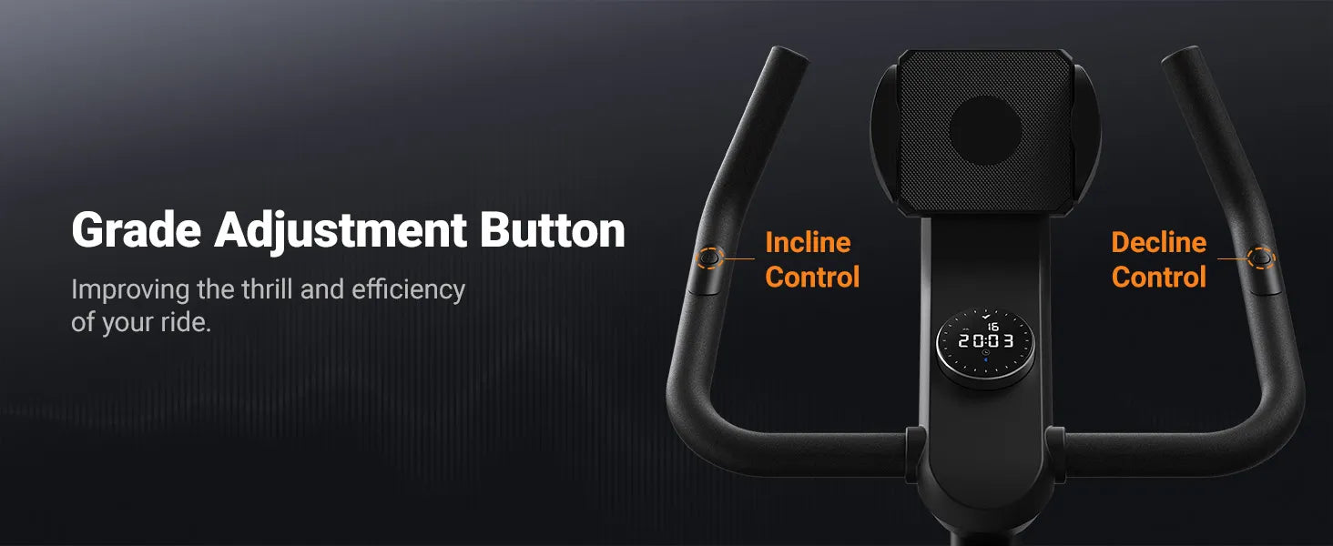 Our incline bike machine delivers a truly immersive ride, simulating uphill and downhill terrain with a ±6° automatic incline. Sync it with the FantomFite app and enjoy dynamic uphill and downhill rides.