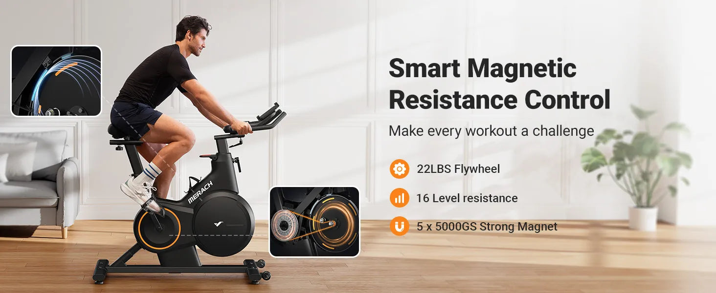 Choose from 16 automatic resistance levels for light to intense workouts, adaptable for bikeriders of all fitness levels. Integrated with Merach Apps, the indoor incline bike provides real-time adjustments for a seamless and personalized training experience.