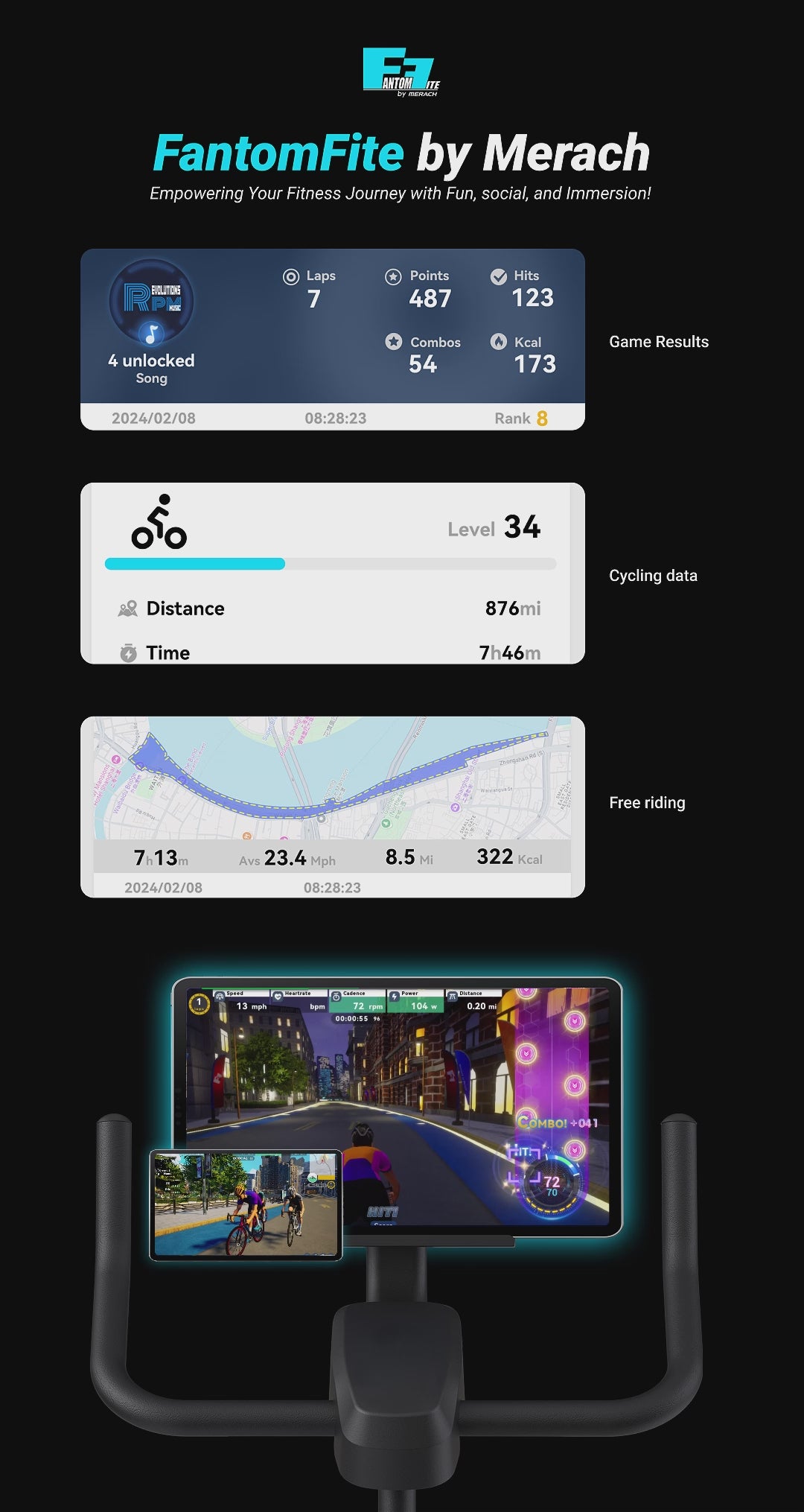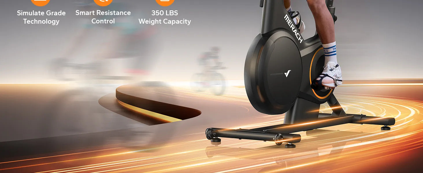 Merach S28 Smart Off-Road Racing Bike for Home offers ±6° gradient simulation, syncing with the FantomFite app for an interactive and challenging workout. Enjoy dynamic uphill and downhill rides, with virtual scenes and tasks to keep you motivated