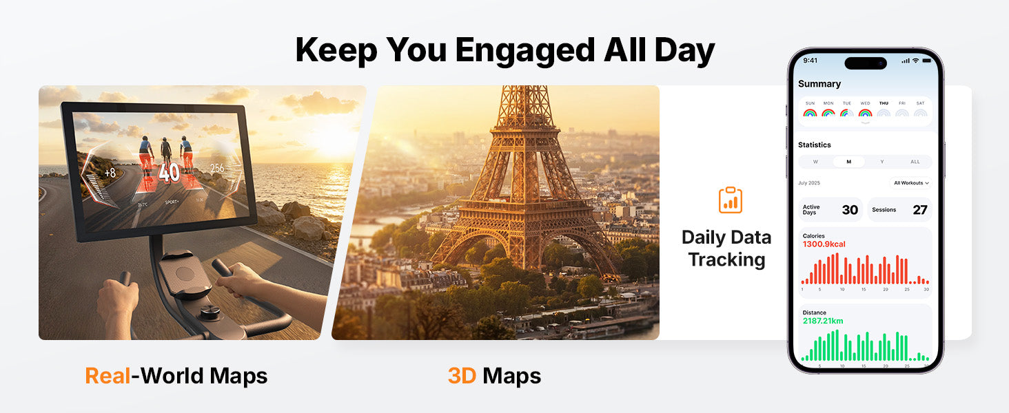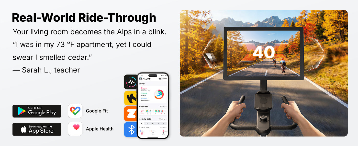 The 40 lbs flywheel feels solid and smooth, and the 16-level auto resistance adjusts perfectly for every interval. Guided rides and real-world routes push me hard, and I can actually feel the difference in my endurance and strength. Every session is challenging but satisfying.