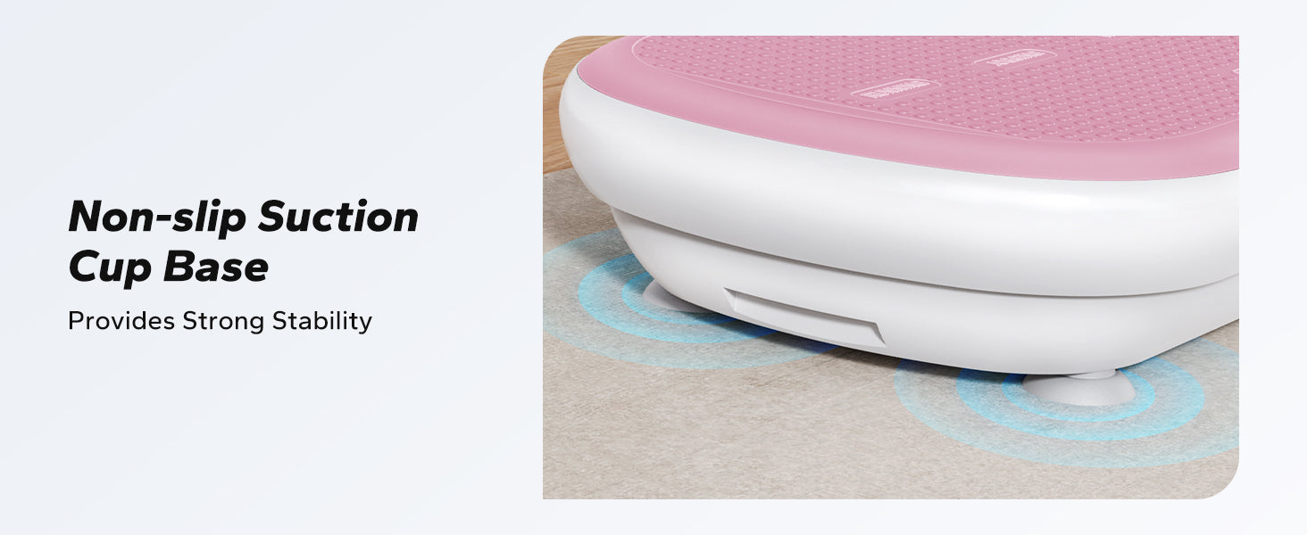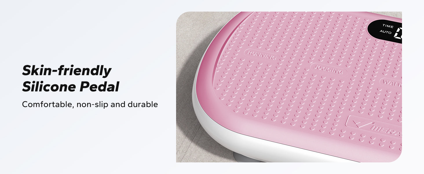 Equipped with Bluetooth connectivity and built-in speakers, this vibration plate syncs with your devices to play motivational music. The textured silicone pedals offer secure footing and comfort during extended use, while the eco-friendly materials ensure odor-free operation.
