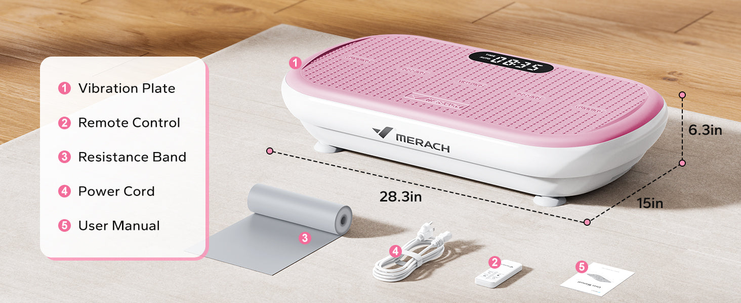 Choose from 10 preset modes to match your fitness level, whether you're new to vibration training or an experienced user. Two resistance bands allow full-body workouts, and the included remote control with LED display simplifies intensity adjustments.