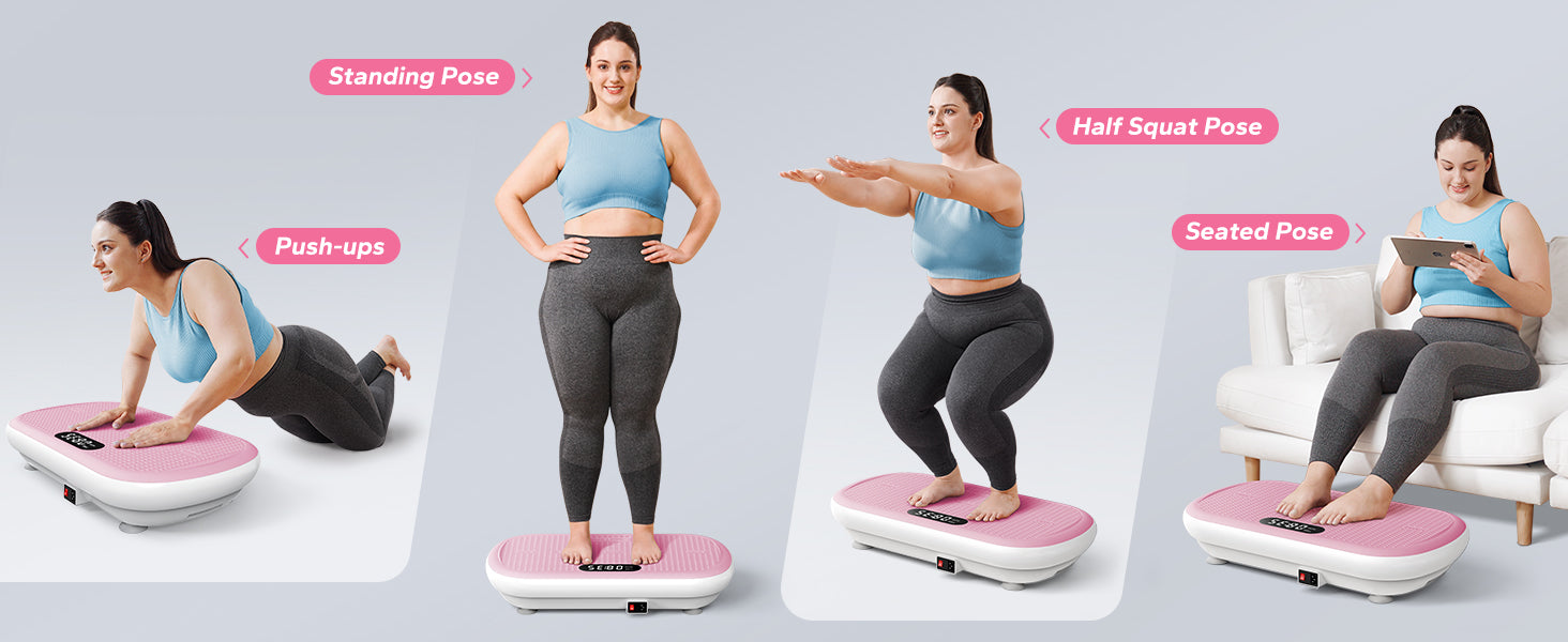Equipped with intelligent sensors, the fat loss vibration plate automatically starts when you step on and pauses after 30 seconds of inactivity for safety. It can also adapt vibration speed based on your movements, creating personalized sessions that enhance vibrating platform for weight loss results.
