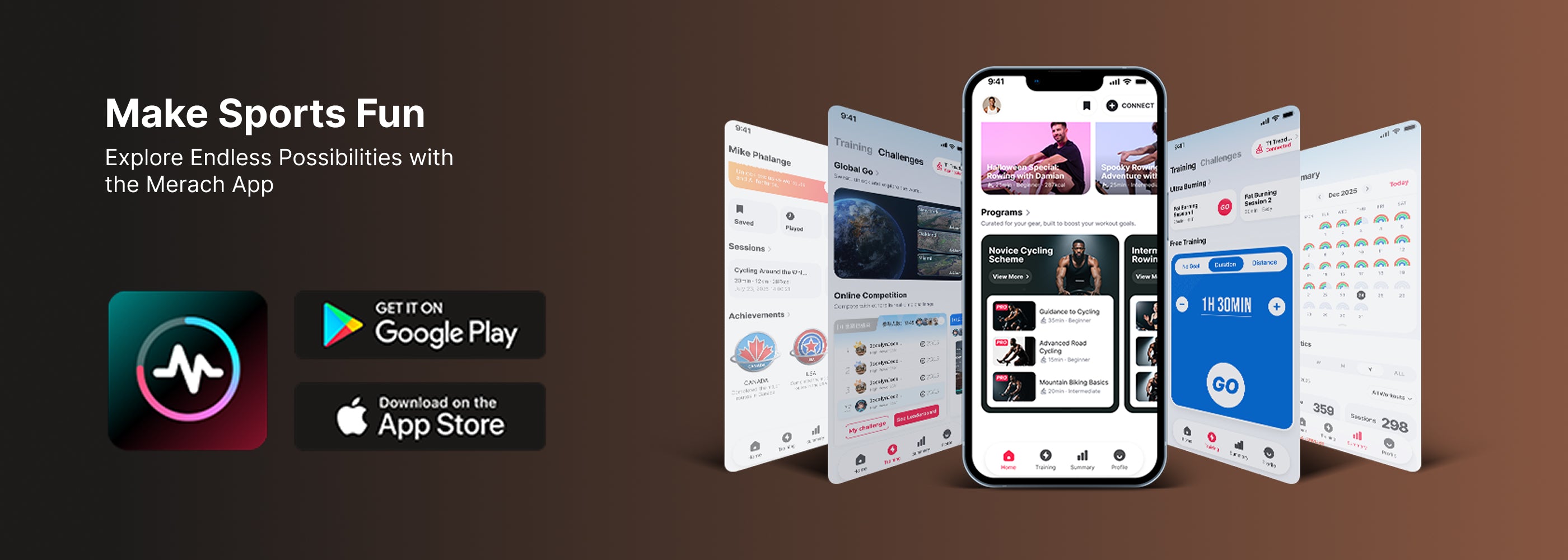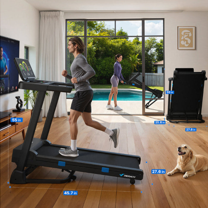 Enhance your workouts with the MERACH app—explore scenic routes, join coached classes, compete with friends, and track progress in real time.