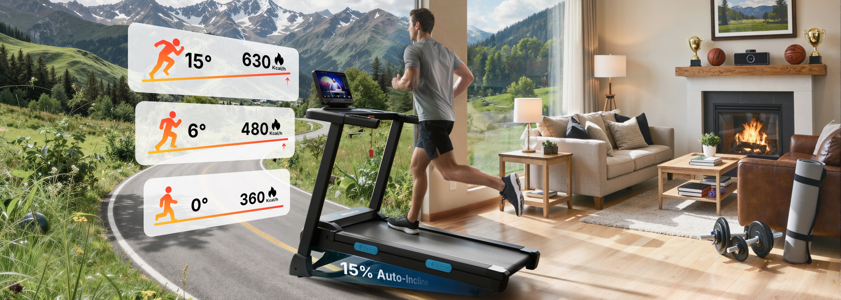 The 15% automatic incline adds variety to workouts by simulating uphill training, promoting greater calorie burn, and breaking the monotony of flat runs. This feature helps enhance workout intensity and engagement.