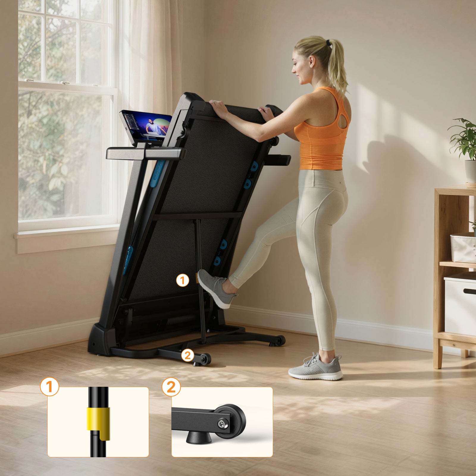 15-second quick storage and deployment — lift to unfold, lift to fold, making your treadmill as flexible as your schedule.