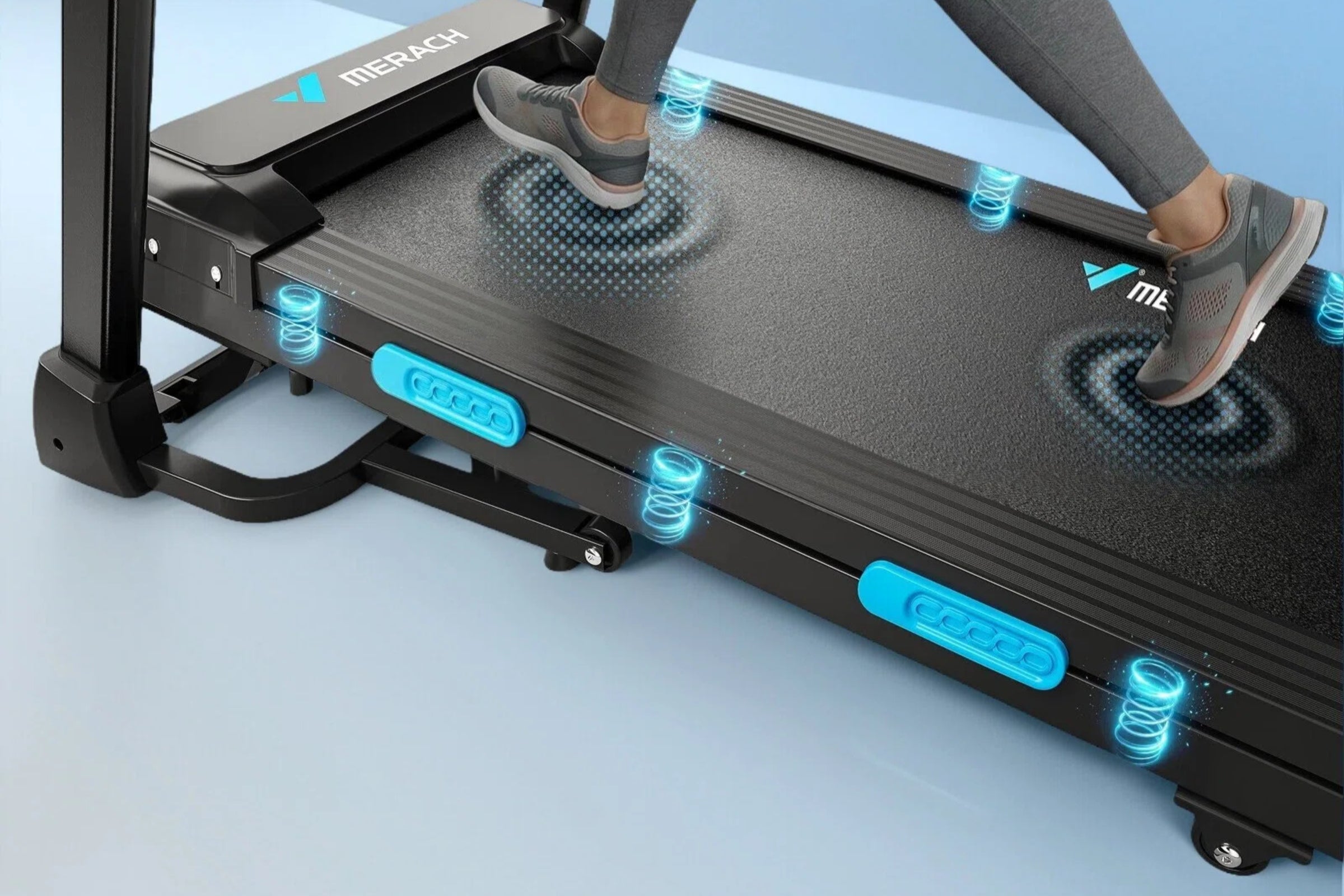 Six shock-absorbing pillars cushion impact and reduce joint stress, while the non-slip treadbelt provides improved grip and stability, ensuring safer and more comfortable workouts.
