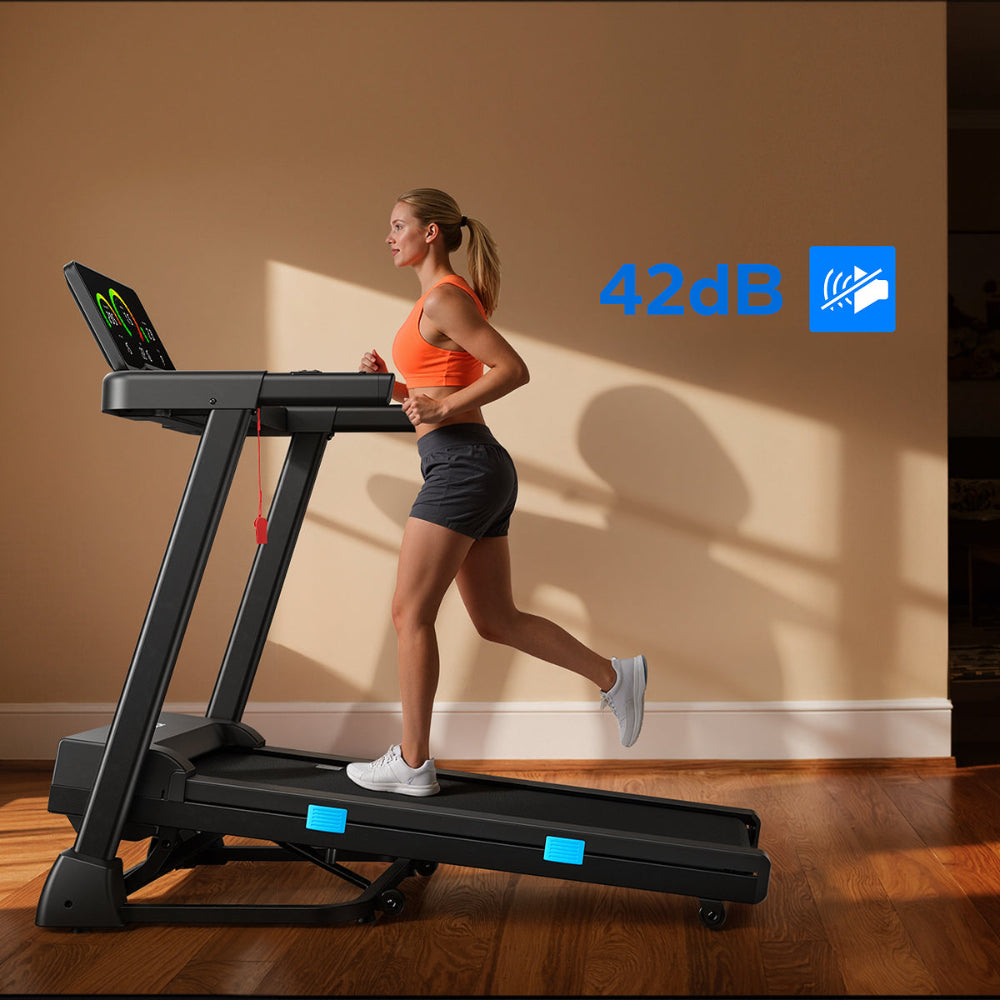12 preset programs simulate outdoor training with incline walking or jogging—burn up to 40% more calories than flat running. The quiet deck design keeps noise under 42 dB, so you can exercise anytime without disturbing family or neighbors. Whether used as a small treadmill for your apartment or a family fitness solution, every step feels stable, cushioned, and natural—just like running outdoors.